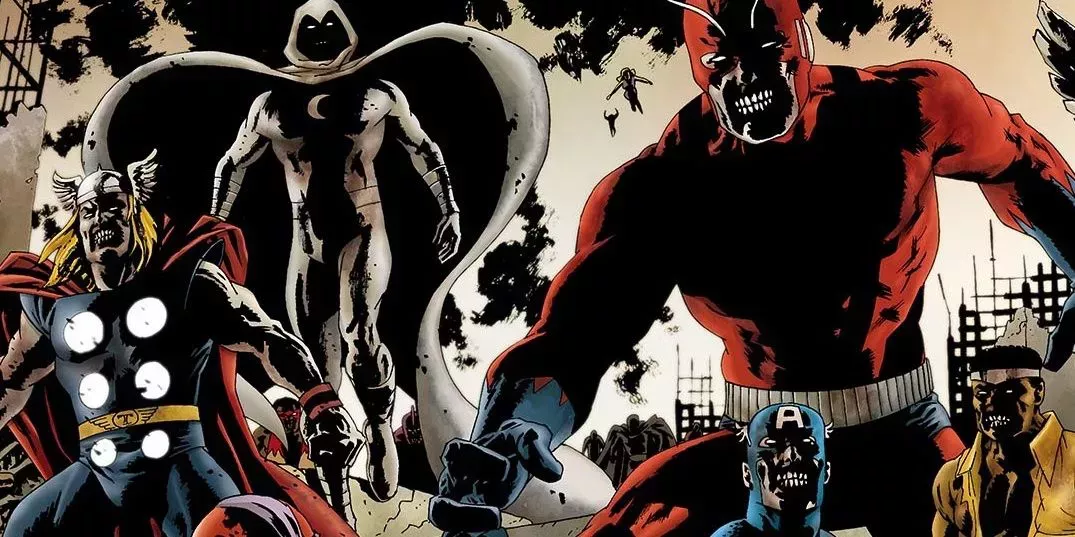 Una dimensión paralela clásica en el Universo Marvel, la línea temporal del "Zombieverso" tenía lugar en la Tierra-2149, donde todo el planeta estaba infectado con una infección parasitaria que convertía a todos en monstruos no muertos. Como los superhumanos del planeta albergaban el virus mejor que los seres humanos normales, los Vengadores no muertos se apoderaron rápidamente del planeta, consumiendo a todos los que se encontraban a su paso.