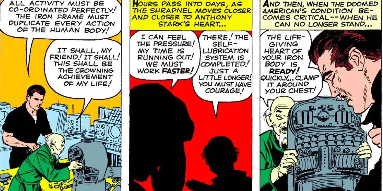 Antes de convertirse en superhéroe, Stark pasó años tratando de compensar sus acciones. Aunque dejar que el Gobierno de Estados Unidos le quitara las armas le llevó a crear a Iron Man, antes de pasar de empresario a superhéroe, necesitó la ayuda de Yinsen para contener a los soldados el tiempo suficiente para ponerse la armadura y potenciarse.