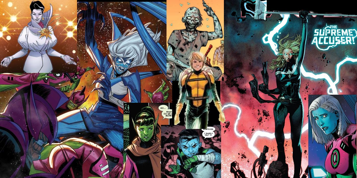 Durante el evento de la línea, algunos personajes conocidos obtuvieron algunos poderes mejorados y nuevos aspectos. Carol Danvers se convirtió en la acusadora suprema (reemplazando a Ronan) y descubrió que tenía una media hermana, Lauri-Ell. Otros nuevos personajes incluyen a Stormranger, un nanotraje kree que una vez estuvo unido a Ms. Marvel, quien se volvió consciente de sí misma y una despiadada vigilante espacial. El no-muerto mutante Explodey Boy, que puede detonar partes de su cuerpo, también se unió al universo durante el evento.