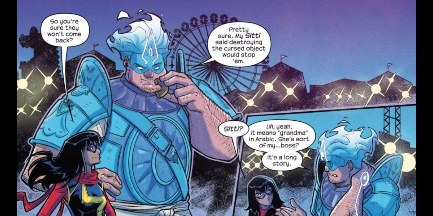 La Magnífica Ms. Marvel #13 presentó a Amulet, un superhéroe árabe-americano de Dearborn, Michigan, creado por el equipo creativo de la serie del escritor Saladin Ahmed y la ilustradora jordano-americana Sara Al-Fageeh.