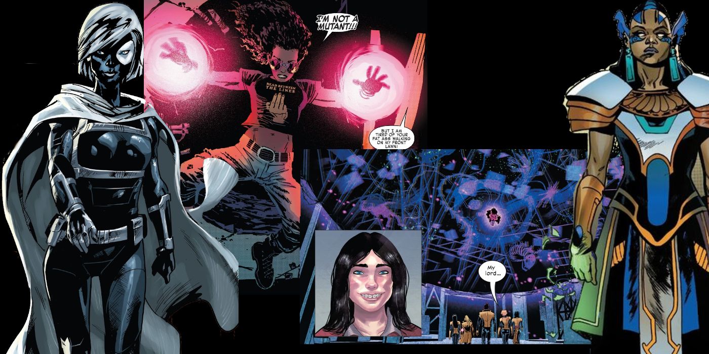 Juggernaut encontró su opuesto en D-Cel, una adolescente sin hogar con la habilidad de frenar las fuerzas cinéticas que, como él, no es un mutante pero que aún posee poderes extraordinarios opuestos a los suyos. También se reveló que Apocalipsis, durante su reinado en el antiguo Egipto, tuvo una esposa llamada Génesis, que también fue la madre de los primeros jinetes.