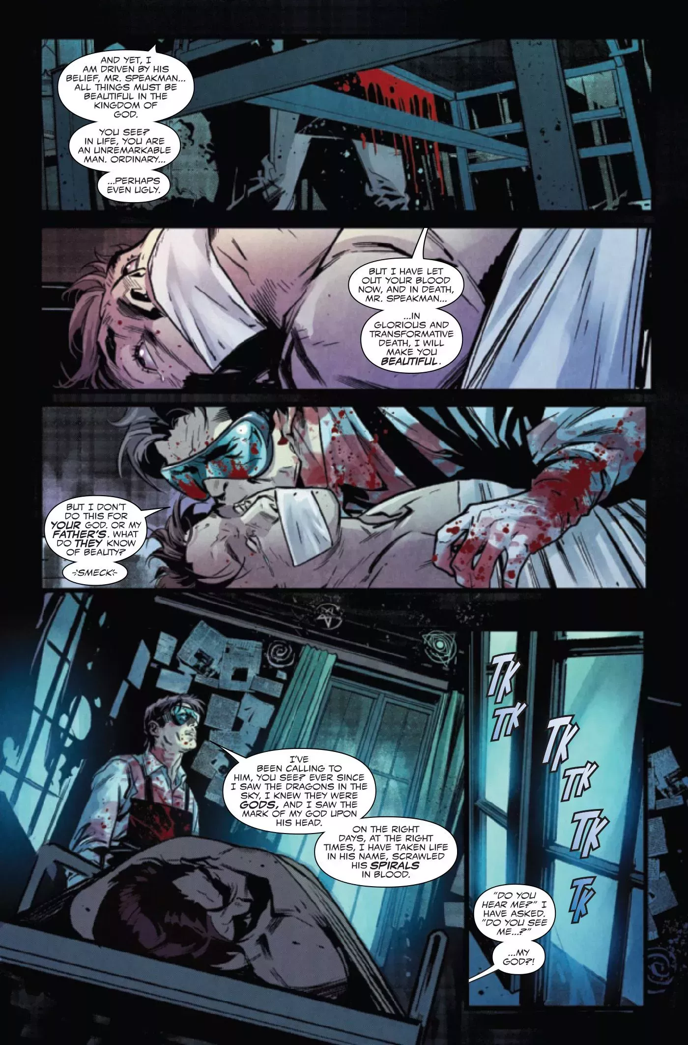 Este fan de Carnage se llama Kenneth, y el avance muestra que no sólo asesinó a otros en nombre del villano, sino que también lo admiraba desde muy joven. Últimamente, las historias de Carnage infectando las mentes de los niños se han vuelto más comunes en Marvel Comics, y han involucrado al simbionte obligando a su joven huésped a atacar a su familia. Esto ocurrió tanto en el one-shot del 30 aniversario de Carnage, Carnage Forever #1, como en la serie antológica Carnage: Black, White & Blood del año pasado.