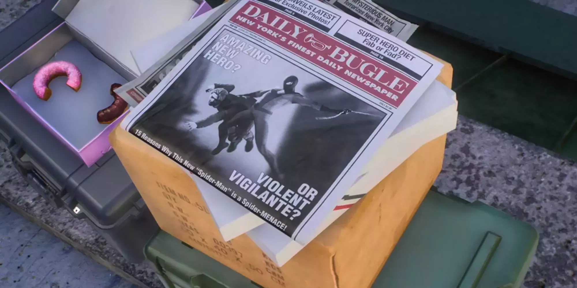 Durante la misión secundaria "Photo Help" en Marvel's Spider-Man 2, una fotógrafa llamada Mina que espera dar el pistoletazo de salida a su carrera como reportera gráfica pide ayuda a Spider-Man para capturar una foto suya que sea tan buena como la primera foto de portada de Peter Parker para el Daily Bugle. Al examinar el periódico cercano, los fans de los cómics pueden notar algo bastante familiar en la foto de portada.