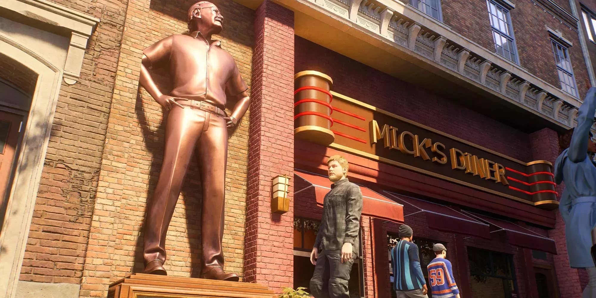 Mientras los jugadores se balancean por el distrito Upper West Side en Marvel's Spider-Man 2, es posible que se topen con una estatua alta y muy familiar cerca de un restaurante llamado Mick's Diner. La estatua es, de hecho, el mismísimo Stan Lee, que hizo numerosas apariciones en películas y series de televisión de Marvel hasta su fallecimiento en noviembre de 2018.