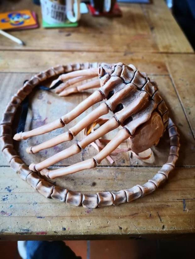 Esto ha debido pensar Lady Frankestein, que no ha dudado en diseñar su propia mascarilla, imitando al Facehugger de Alien que introducía el embrión de la criatura en el cuerpo del huésped. El resultado está muy logrado por el realismo final, por desgracia, Lady Frankestein no ha subido un tutorial para poder replicar la mascarilla. Aunque el trabajo parece bastante complejo, se rumorea que la mascarilla usada ha sido de filtros tipo FFP2.