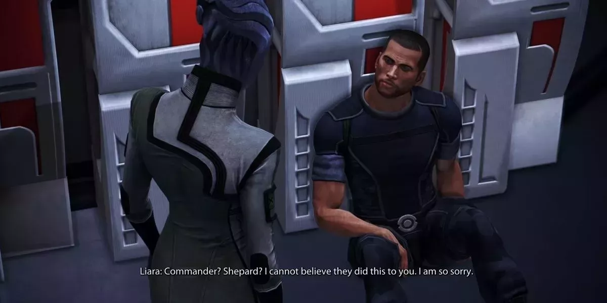 En un momento del Mass Effect original, Shepard está a punto de atrapar al pícaro Spectre Saren, pero entonces la Normandía es incautada en la Ciudadela para que Shepard no cometa ninguna imprudencia. Shepard está furioso, y un compañero de escuadrón se acercará para consolarlo.