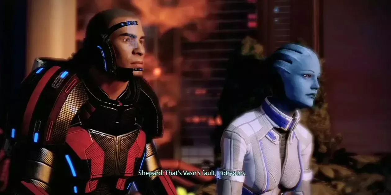 Después de despachar a Vasir, Liara está tensa y concentrada en la misión, y Shepard intenta que se relaje. El corazón de Liara está tenso y confuso, ya que Shepard fue su amante, luego murió y ha vuelto. Ella ha seguido adelante, y no es fácil rebobinar su vida para recuperar a Shepard. Pero lo está intentando, y hay esperanza de reavivar el romance perdido. Sin embargo, llevará tiempo.