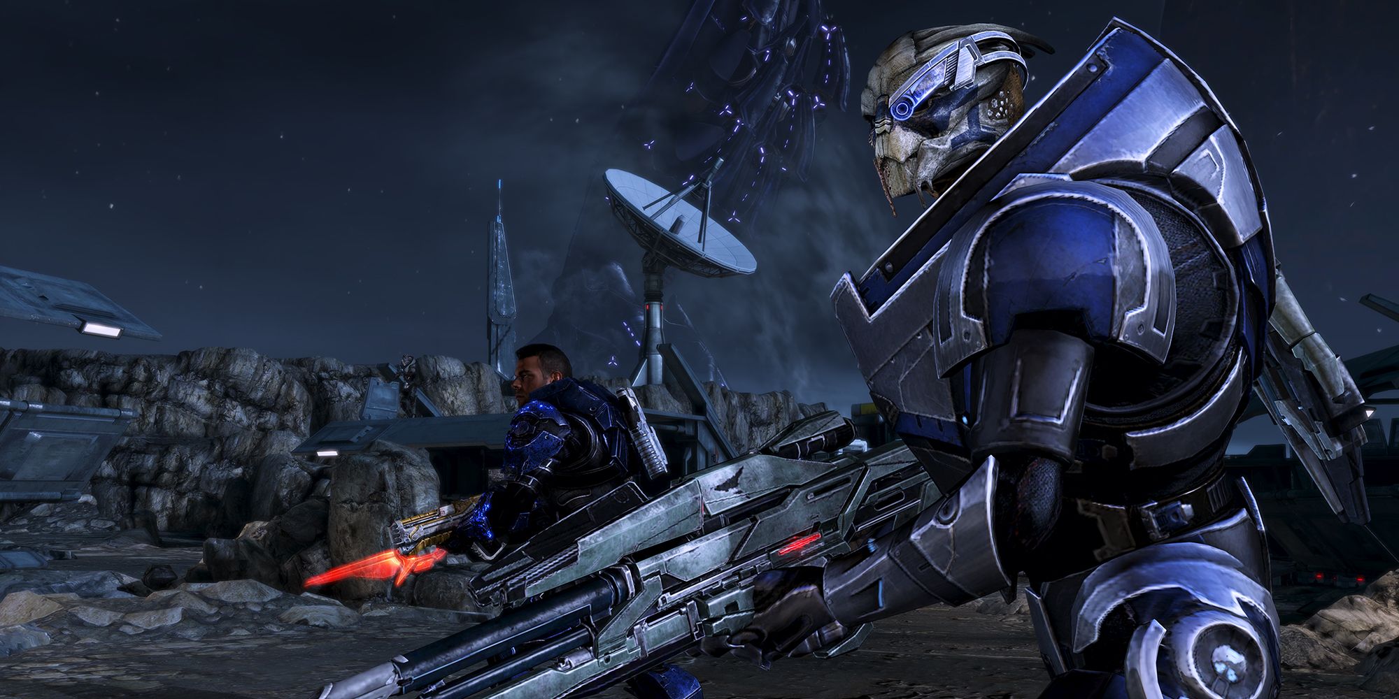 Tras perder la pista el uno del otro después de Mass Effect 2, Garrus y Shepard vuelven a encontrarse en la luna más grande del mundo natal de los turianos. Ver a Garrus vivo y sano es un gran alivio, ya que durante toda la misión, Palaven es visible en el cielo, bañado en llamas. Lo que puede resultar sorprendente es que Garrus ha sido nombrado asesor de la jerarquía turiana en relación con la amenaza de los Segadores.