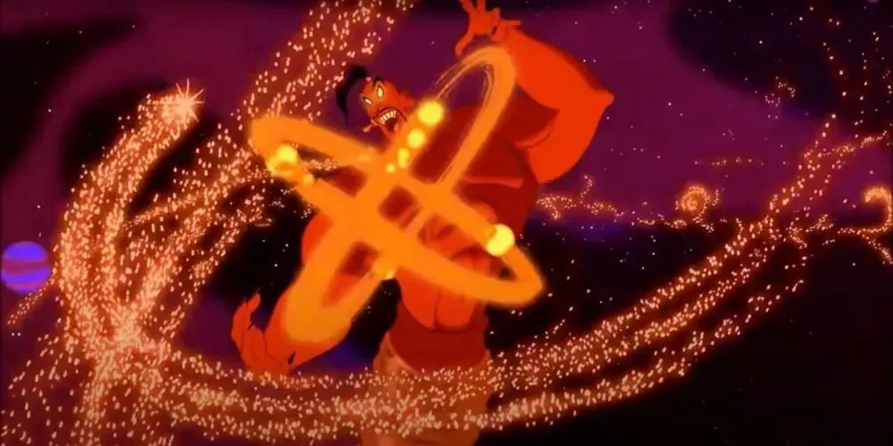 Como humano, Jafar utilizaba su bastón mágico para hipnotizar a sus víctimas y obligarlas a cumplir sus órdenes, al igual que Maximoff. Aunque Wanda no es una villana absoluta, algunas de sus acciones son poco heroicas. Cuando Jafar se convierte en "el hechicero más poderoso del mundo", puede proyectar energía, transmutar objetos, cambiar de forma y utilizar poderes telequinéticos. En su forma final como genio, es capaz de conjurar objetos de la nada, volar, teletransportarse y fusionar sombras. Además, su piel roja complementa perfectamente el atuendo de Bruja Escarlata.