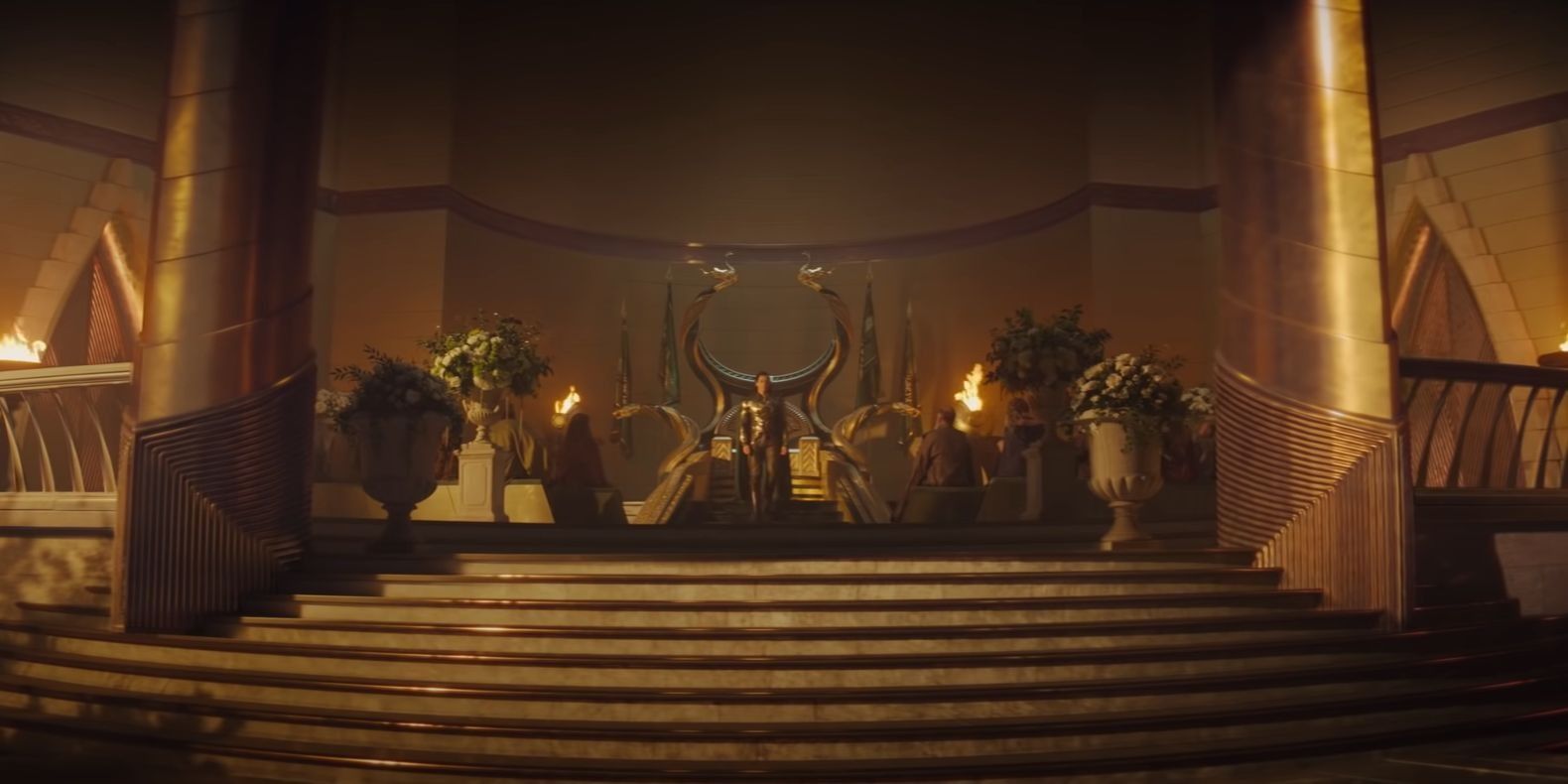 Esto podría explicar la escena de Loki sentado en un trono en los trailers, que parece ser una versión modificada del trono de Odín con la adición de serpientes doradas, ya que se sabe que a Loki le encantan las serpientes. También podría confirmar la rumoreada aparición de Thor en la serie, sobre todo después de que Loki mencione a su hermano.