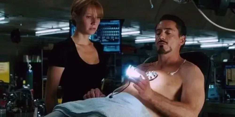 Cuando Tony se convierte en Iron Man, es en parte el resultado de la fuente de energía que se encuentra en el centro de su pecho y que le permite ser realmente uno con su traje. Es alguien que tiene que depender de esa tecnología para realizar sus actos heroicos. El problema en los primeros días de sus apariciones en el MCU es que la fuente de energía tiene que cambiarse como la pila de un detector de humo. Tony intenta hacerlo él mismo, pero no puede.
