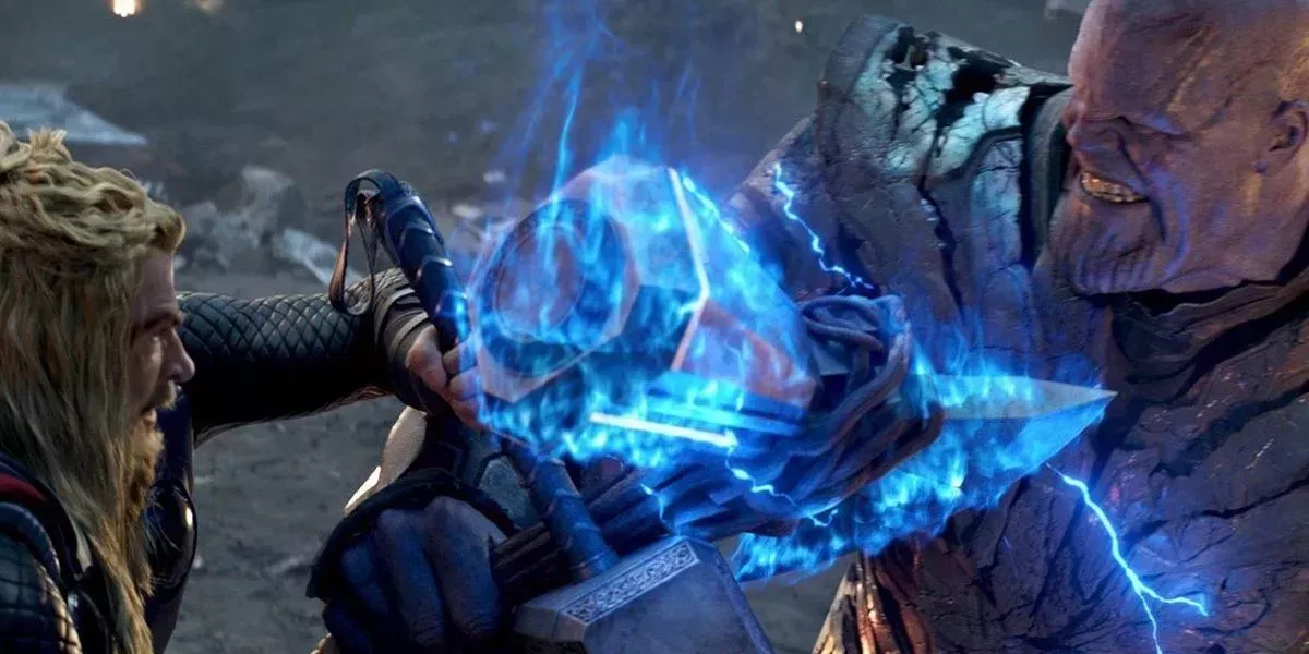 Con la hoja de Stormbreaker tallando lentamente su armadura pectoral, toda esperanza parecía perdida para Thor hasta que el Capitán América intervino con Mjolnir. Thanos no tuvo otra oportunidad con el Rompetormentas, pero una de ellas estuvo demasiado cerca.