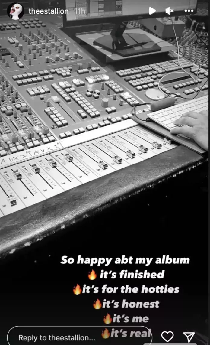 La rapera de Houston compartió la noticia en su Instagram Stories junto a una foto suya trabajando en el estudio.