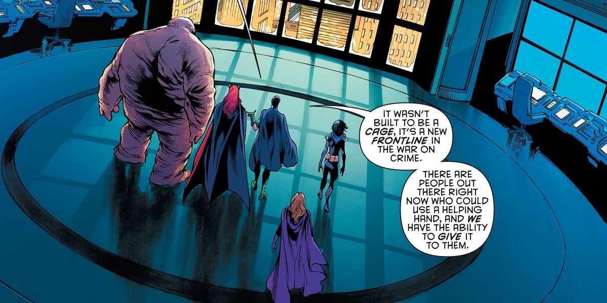 Para reunirse, Tim Drake construyó un cuartel general único y una guarida oculta conocida como El Campanario, que se conectaba a los antiguos sistemas de túneles que no se usaban en Gotham City y se mantenía en el corazón de la ciudad, oculto a plena vista.