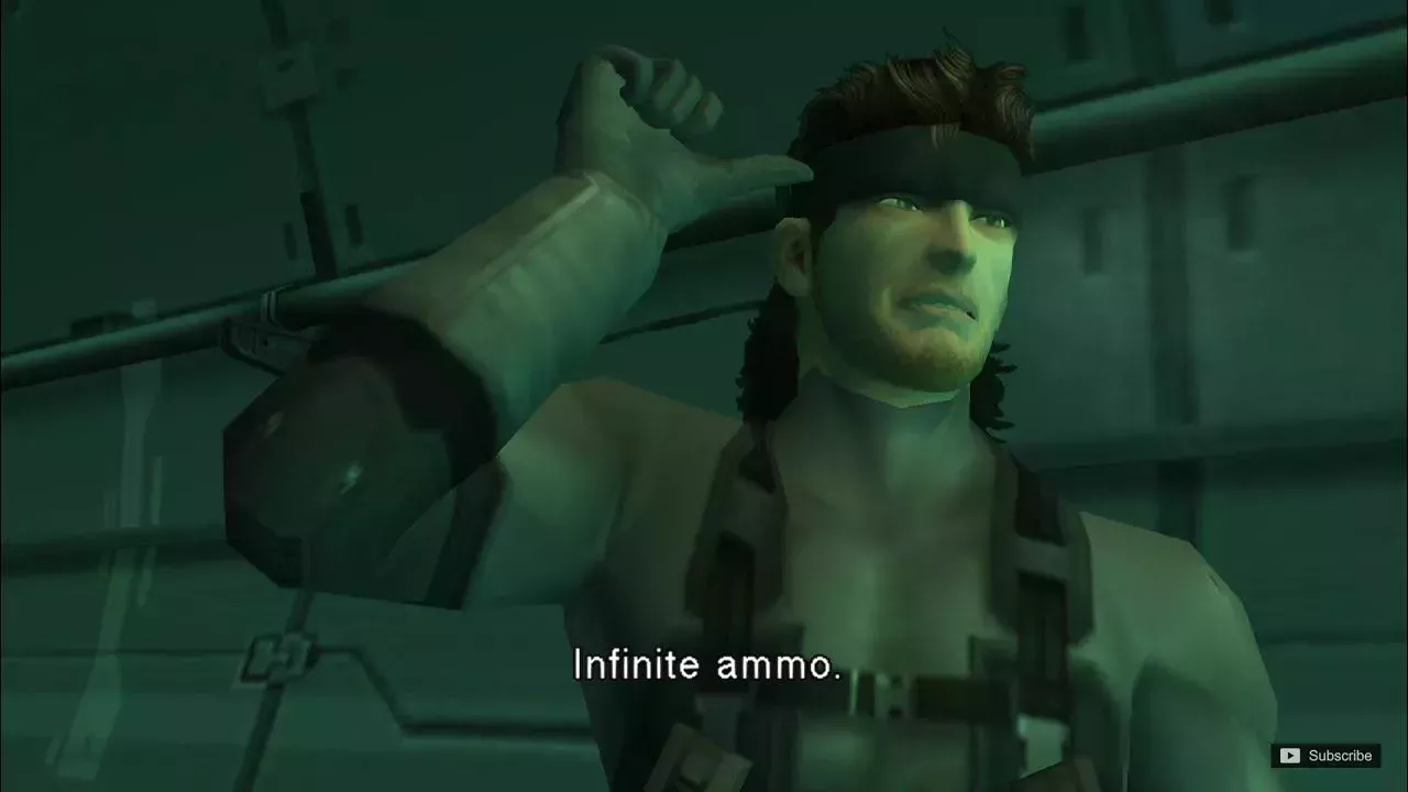 En Metal Gear Solid 2, hay una escena en la que Snake señala su boina y dice"Munición infinita"."Esto sólo tiene sentido para los jugadores que hayan obtenido el final del primer juego en el que Meryl sobrevive. A un fan de Kojima de toda la vida le pueden hacer gracia estas bromas, pero a un espectador no iniciado podrían resultarle muy extrañas y fuera de lugar.