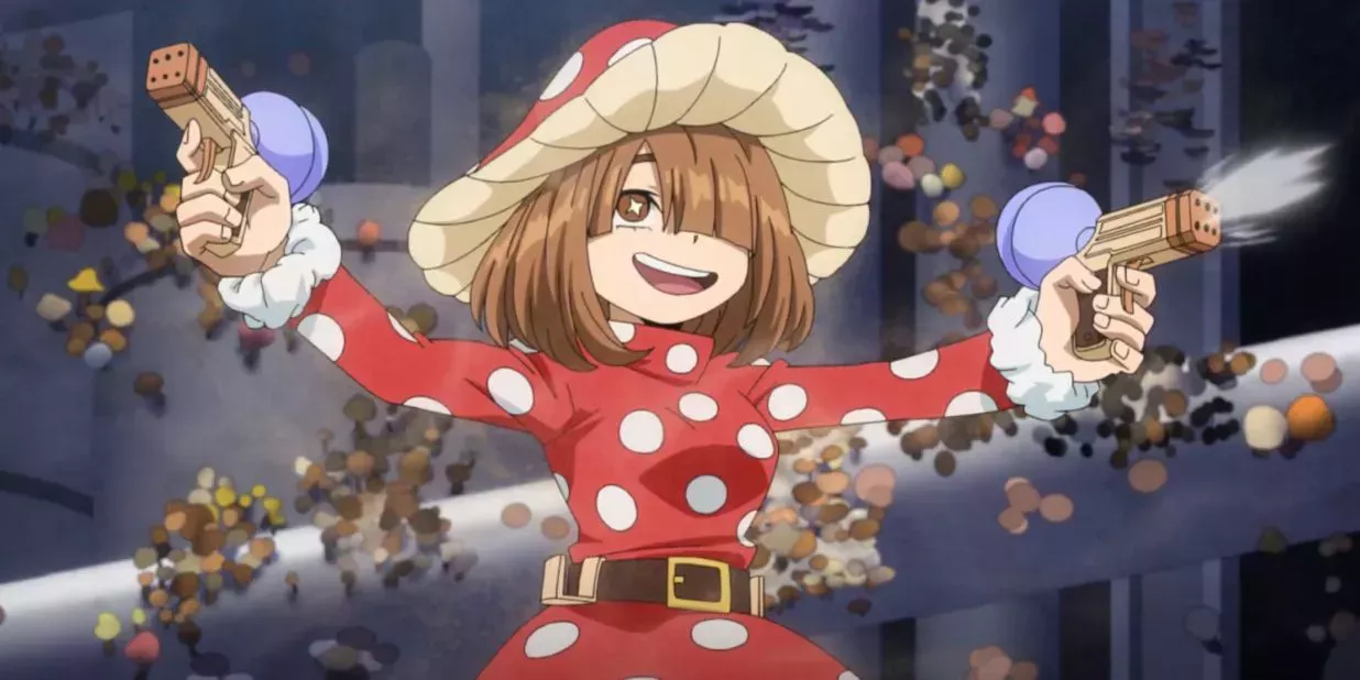 Los Quirks no tienen que ser increíblemente poderosos para ser memorables y Kinoko Komori es un ejemplo perfecto. Un Quirk especializado como el de los hongos parece extraño y quizá no sea especialmente útil para la heroicidad. Puede emitir esporas de varios hongos desde su cuerpo y setas que empiezan a crecer en cuanto entran en contacto con una superficie sólida. Sus armas especiales emiten humedad que favorece el crecimiento de los hongos.