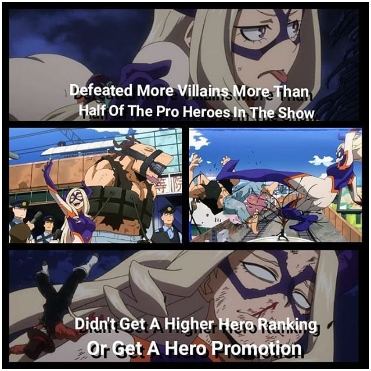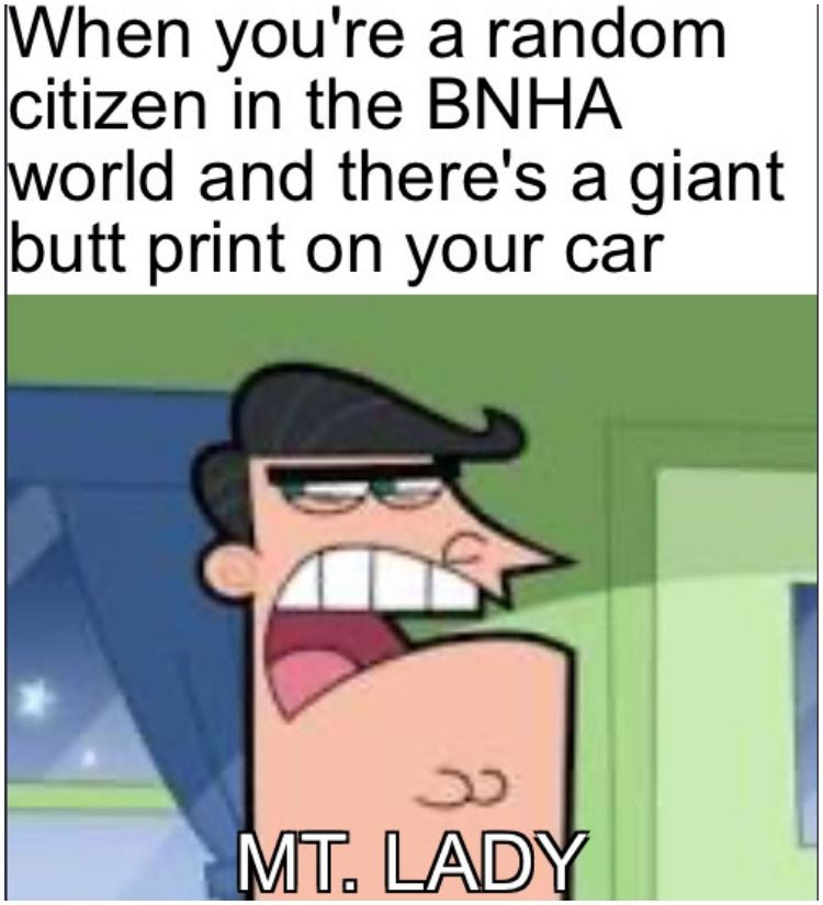 Mt. Lady es constantemente una fuente de humor en la serie, y los fans no han perdido tiempo en hacer sus propios chistes para ir a la par con ellos. Su disfraz, su forma de manipular a los hombres y su polémica relación con su compañero profesional Midnight son un gran personaje y un sinfín de increíbles e hilarantes memes.