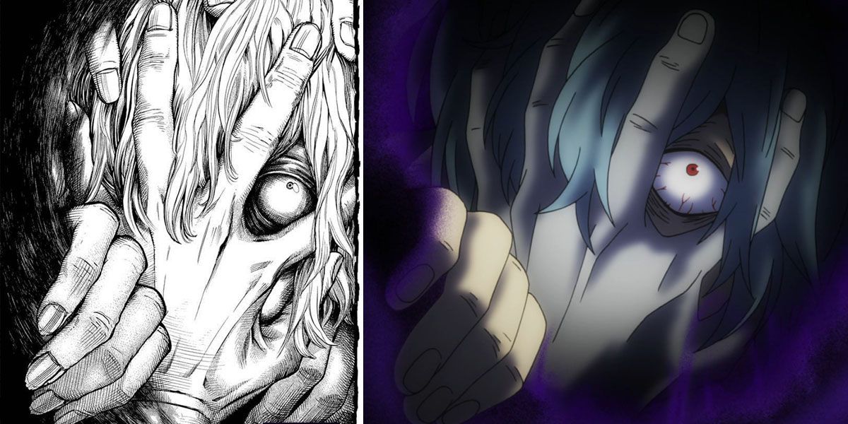 En el anime, parece que alguien se volvió loco con la herramienta de quemado del Photoshop, mientras que en el manga, cada lÃnea está cuidadosamente grabada para hacer que Shigaraki parezca lo más espeluznante posible. Sus uñas son dentadas, su pelo está despeinado, y los pliegues alrededor de sus ojos le hacen parecer absolutamente desalmado.