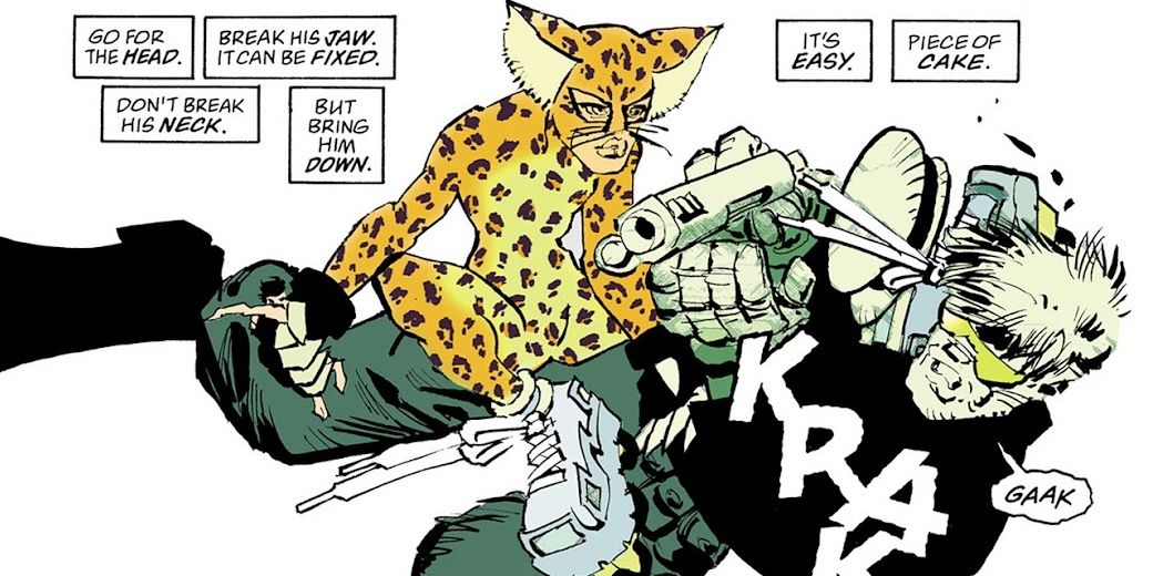 Sin embargo, Carrie acabó siendo algo más perversa en su trato con los delincuentes, como cuando utilizó un compuesto psicoactivo para aterrorizar a los alborotadores disfrazados de Guasón, una diferencia notable con los métodos de su mentor, ya que Batman utilizó estimulantes similares (pero con más moderación).