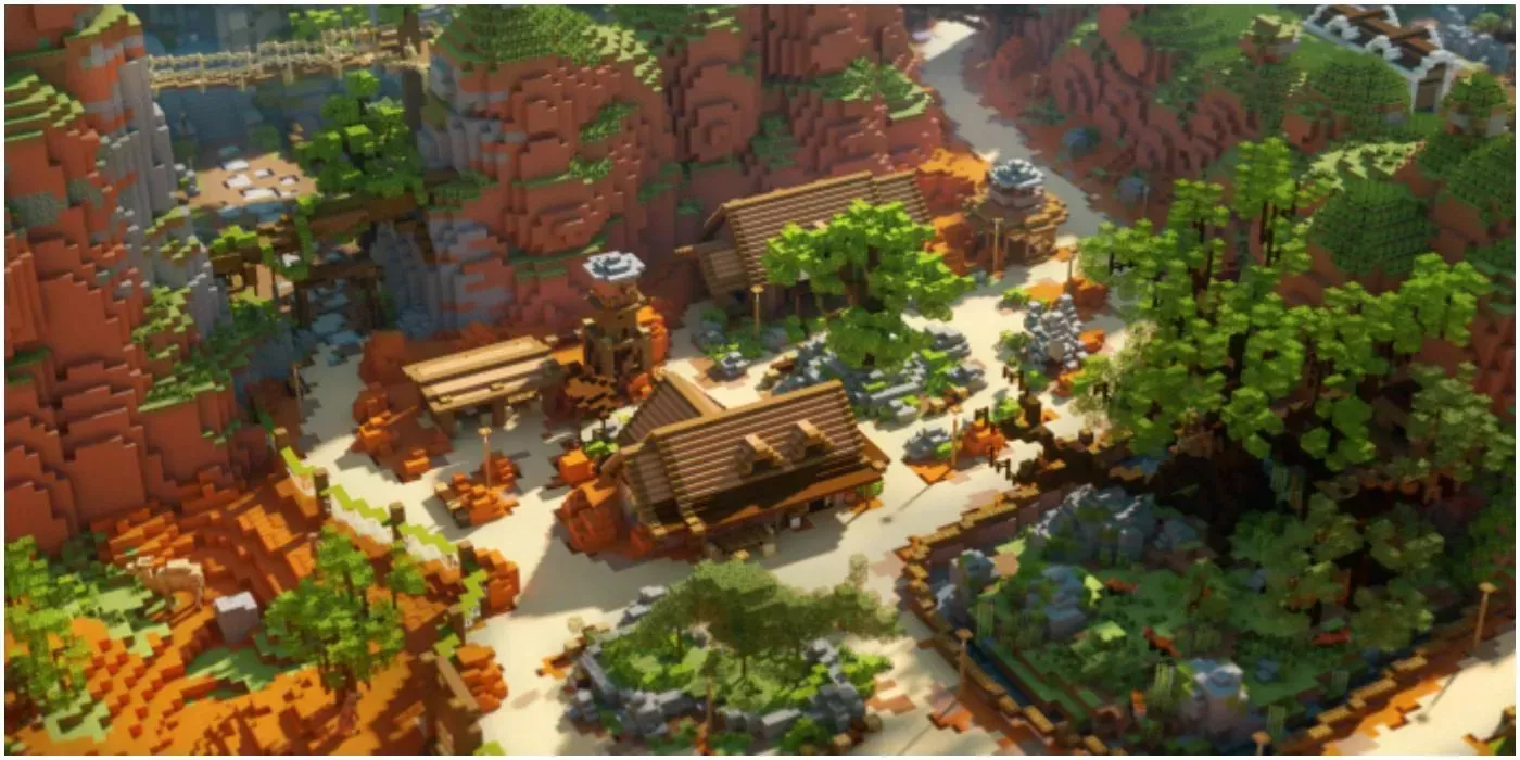 Todo el mundo ha intentado construir una casa en el árbol en Minecraft al menos una vez. No te conformes con una casa singular y personal. En su lugar, construye un pueblo entero en los árboles. Biomas como la Jungla y el Bosque de Roble Oscuro son excelentes opciones debido a la densidad de sus árboles.
