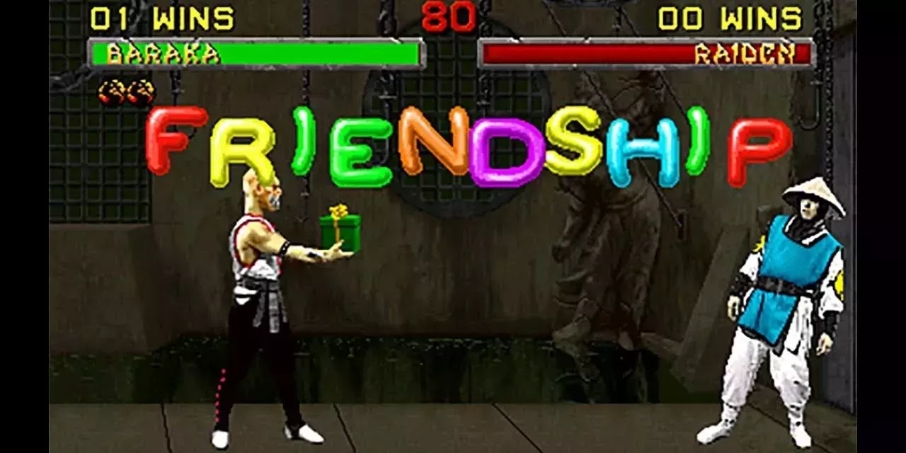 Como respuesta irónica a las protestas por la violencia en el juego original, la serie introdujo las Amistades. Los amistosos se ejecutan en un tiempo y forma similares a los Fatality, pero en lugar de matar al oponente, el personaje del jugador tomará parte en una actividad recreativa desenfadada. Las amistades aparecerían en Mortal Kombat II y Mortal Kombat 3 antes de quedar inactivas. Las amistadesregresarían en Mortal Kombat 11 como una actualización gratuita junto con la expansión Aftermath. Aunque la mayoría de estas amistades son divertidísimas, hay otras que se quedaron en nada.