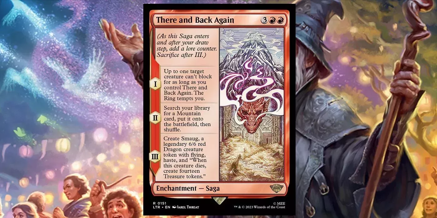 Ida y vuelta representa el viaje de Bilbo Bolsón a la Montaña Solitaria en El Hobbit, donde conoció al dragón acaparador de tesoros Smaug. Cada capÃtulo de esta Saga representa el viaje de Bilbo hasta allÃ, como por ejemplo que una criatura no pueda atacar o bloquear por estar de viaje. Luego, el jugador obtiene una Montaña y, finalmente, el propio Smaug aparece como una ficha de criatura que fabrica tesoros al morir.