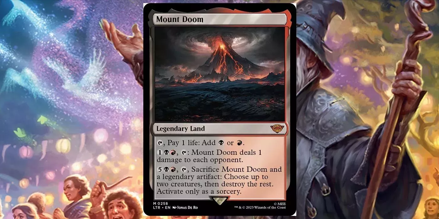 Monte del Destino es la carta de tierra más poderosa y sabrosa de Cuentos de la Tierra Media. Esta tierra legendaria genera maná negro y rojo, los colores propios de Sauron, y su segunda habilidad puede lanzar pequeñas bolas de fuego a los oponentes para acelerar un poco el juego.