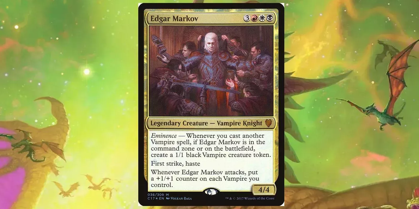 Edgar Markov se imprimió por primera y única vez en los mazos precon de Commander de 2017 y, dada su rareza y utilidad, no es de extrañar que cueste 75 $. Es demasiado para la mayoría de jugadores ocasionales, así que Commander Masters puede y debe reimprimirlo.