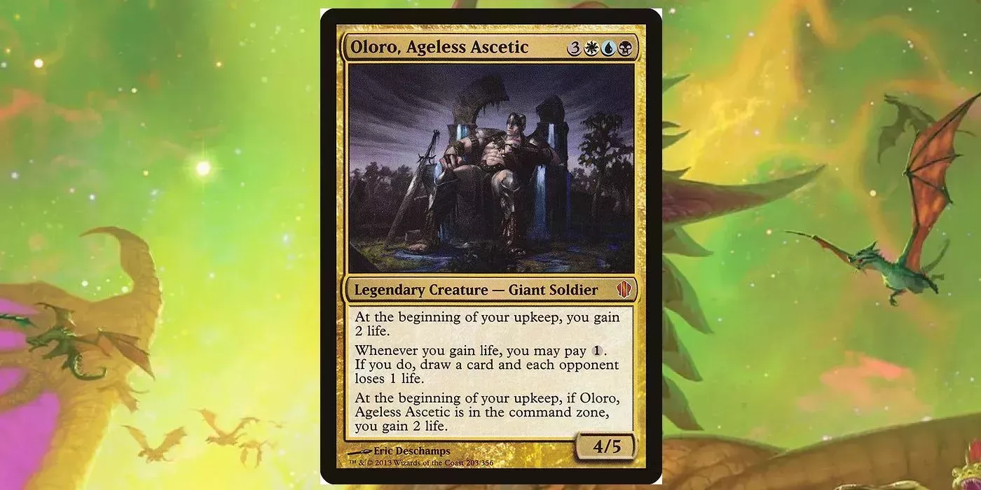 Oloro, ascético eterno es una criatura legendaria de color esper que solo se imprimió una vez en los mazos precon de Commander de 2013. Esto convierte a Oloro en una de las cartas más antiguas hechas para Commander. Con sus geniales habilidades y su precio de 15 $, debería volver en Commander Masters.