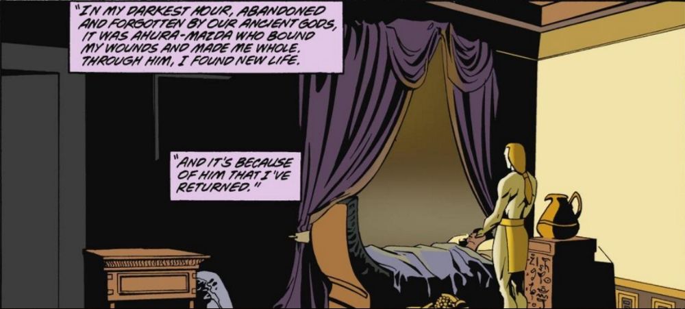 Los cómics de la Mujer Maravilla no sólo presentan a los dioses griegos y romanos, sino también a los de otras religiones antiguas (y en muchos casos, todavía practicantes). Nubia conoce al dios zoroastriano de la luz llamado Ahura Mazda durante su alejamiento de las Amazonas y comienzan una relación. Cuando Ahura Mazda es asesinado, Nubia se aventura en el mundo para conseguir justicia para él.