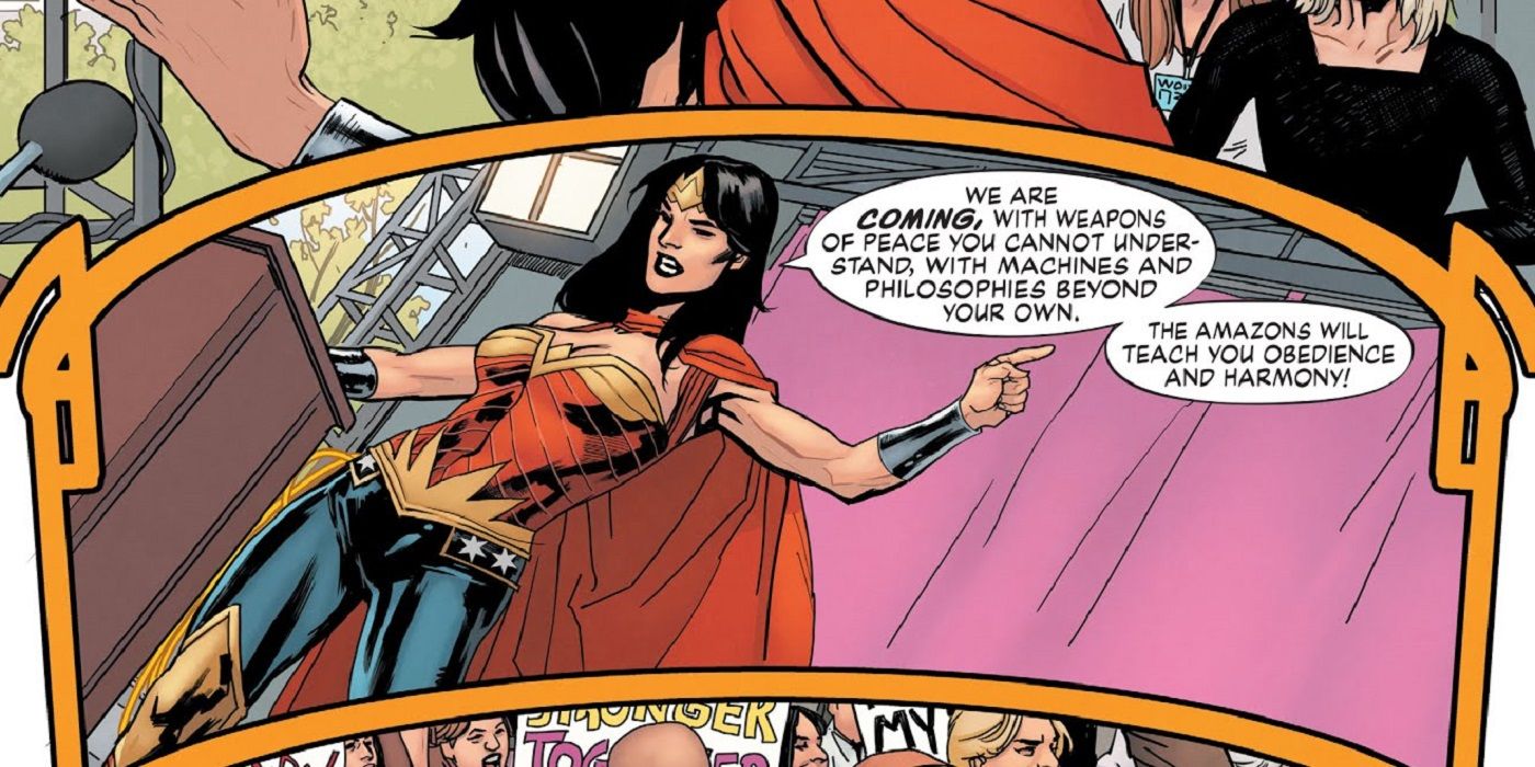 Aunque el nombre cambia, el primer volumen de la historia trata específicamente sobre la Mujer Maravilla que es juzgada por sus compañeras Amazonas por acciones que ellas creen que son ruinosas para la sociedad que han construido durante siglos.