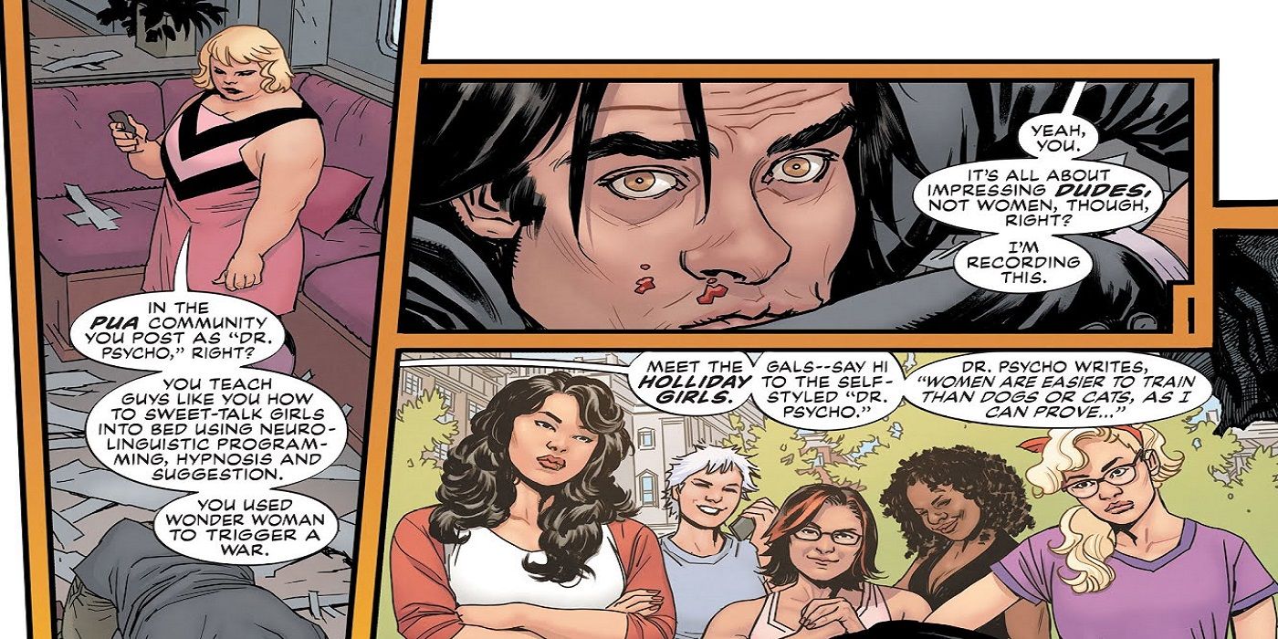 Uno de los mayores cambios que hicieron con el segundo volumen del libro fue convertir al Dr. Psycho en un artista del pick-up, utilizando programación neuro-lingüística, entre otras técnicas, para tomar el control de la mente de Diana. Esto vino con la investigación de Grant en el mundo de los artistas de Pick-Up. Se supone que es una modernización de lo que el Dr. Psycho siempre ha sido, una persona que pretende doblar a la gente a su alrededor a su voluntad. No es un retrato inexacto, aunque es una visión diferente de lo que se muestra en Harley Quinn.