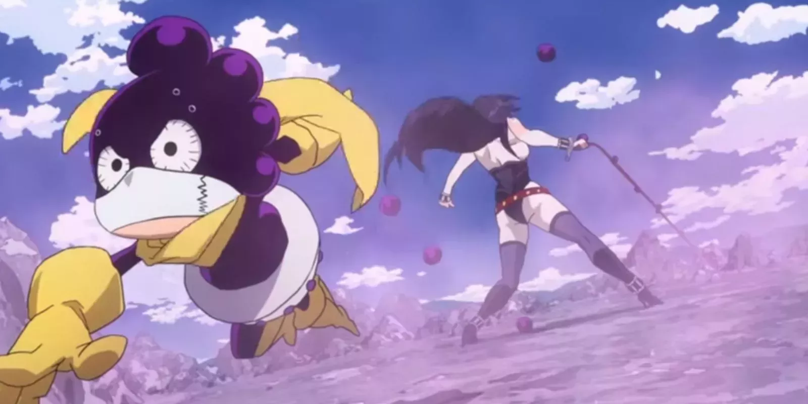 Minoru Mineta es, la mayoría de las veces, una espina en el costado de todos. Es malhumorado, petulante, fastidioso, cobarde y, lo peor de todo, espeluznante. El traje de héroe de Mineta es de un doloroso tono violeta, siguiendo el tema de su Quirk Pop Off.