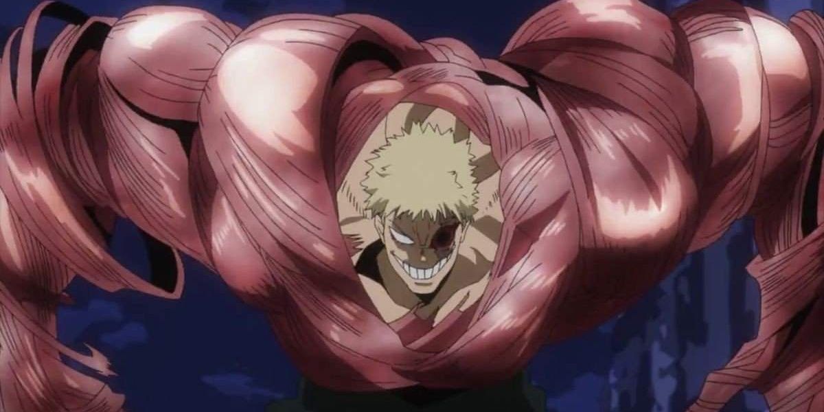 El cuerpo fibroso de Muscular le permitía absorber una cantidad de abusos sin precedentes, incluida toda la potencia del quirk de Deku "Uno para todos". Además, sus hebras servían como apéndices improvisados, bloqueando las extremidades de sus oponentes y facilitando una represalia brutalmente inmediata.