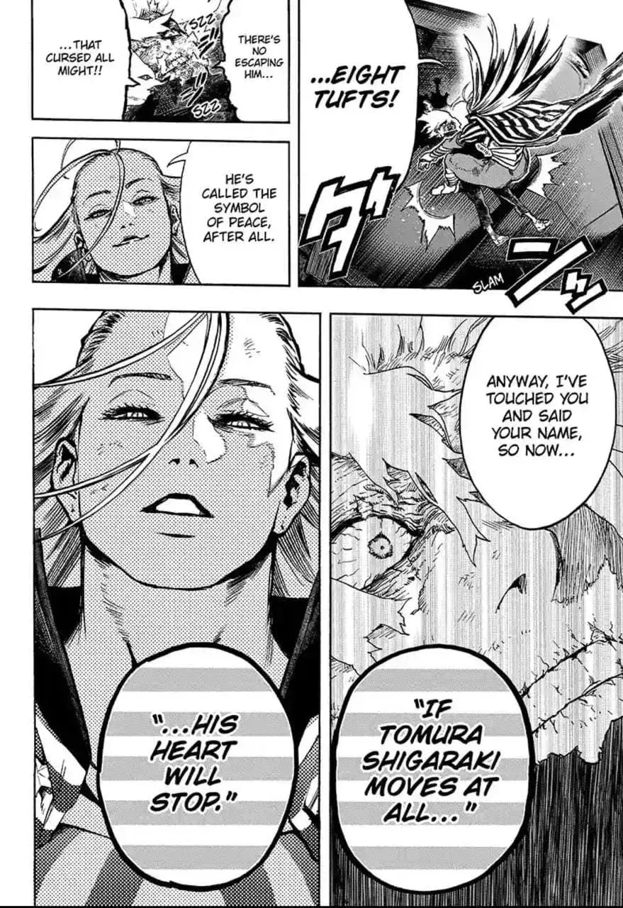 ADVERTENCIA: Lo siguiente contiene spoilers del capítulo 332 de My Hero Academia, "State-of-the-Art Hypersonic Intercontinental Cruise...", de Kohei Horikoshi, Caleb Cook y John Hunt, disponible en inglés en Viz Media.