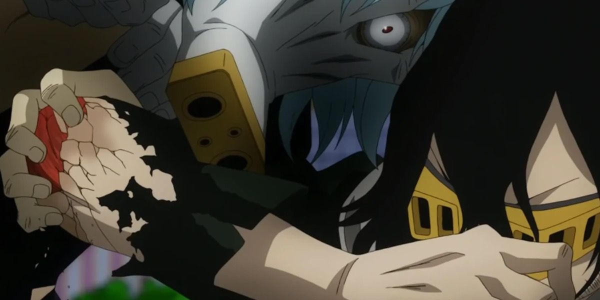 El Decaimiento de Tomura es un Quirk aterrador; lo que es peor es el hecho de que sabe que Eraser Head ya no podrá anularlo durante mucho tiempo. Procede a destrozar el codo del héroe, tras lo cual entra en escena la verdadera potencia.
