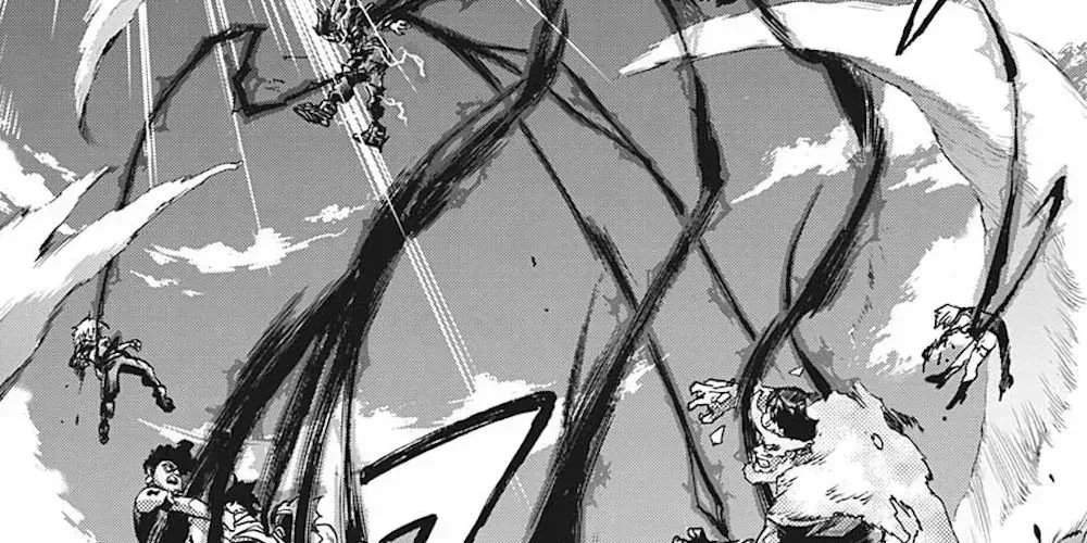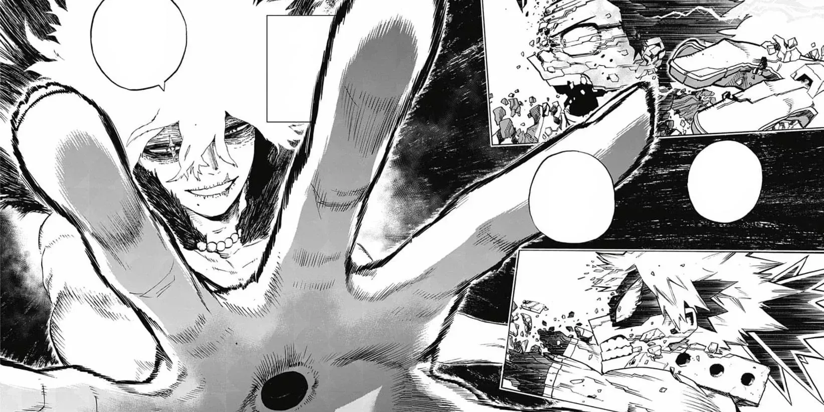 El desarrollo oscuro de Shigaraki continúa y All For One es capaz de acceder al cuerpo de Shigaraki para controlarlo aún más. Shigaraki pierde lo que le queda de su lado humano y borra cualquier vÃnculo y recuerdo persistente de su pasado. TodavÃa tiene que alcanzar el 100%, pero su Quirk de Decadencia ha aumentado a proporciones astronómicas.