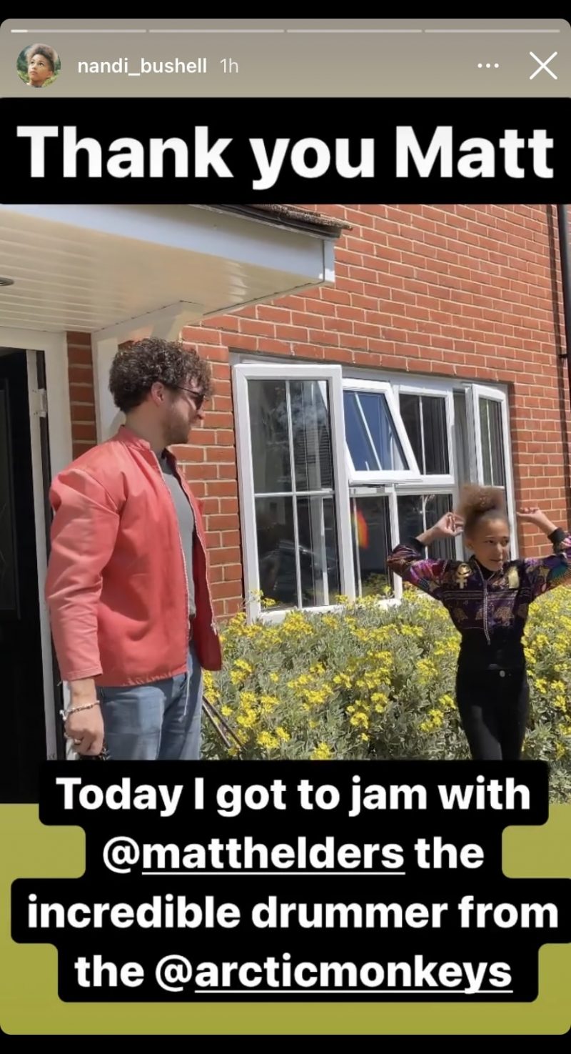 Nandi Bushell y el batería de los Arctic Monkeys, Matt Helders, han grabado una "jam" juntos, según ha revelado el joven músico.
