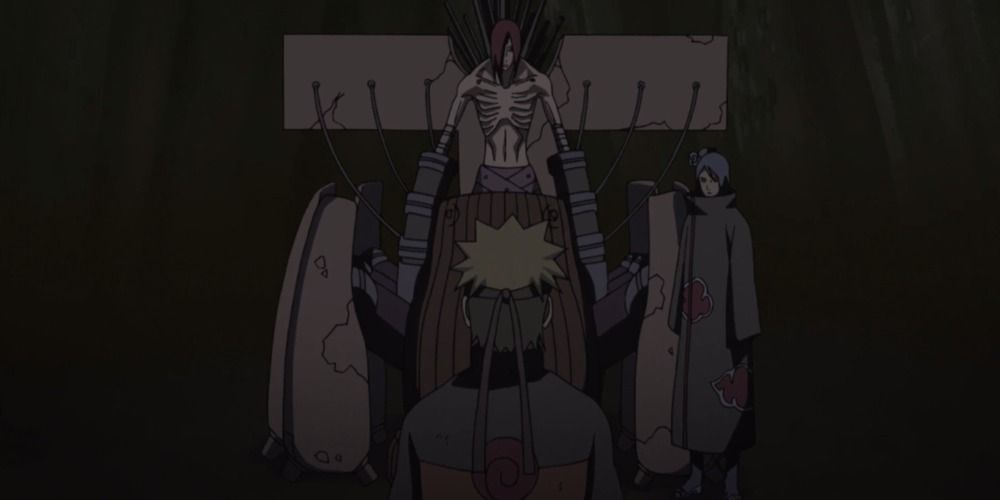 Muchos fans consideran que el arco de Pain es el mejor arco de la serie, y parte de la razón es que había mucho en juego. Tras conocer la ubicación de Naruto, Pain hace una pequeña visita a Tsunade, y cuando ésta se niega a cooperar, decide desatar un enorme Shinra Tensei que destruye la mayor parte de la Aldea de la Hoja.