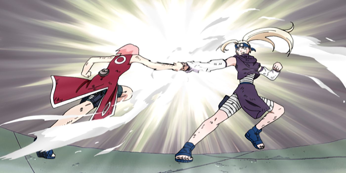 Ino y Sakura estaban igualadas. Para demostrar su punto de vista, Ino se cortó el pelo y lo tiró al suelo, luego lo utilizó para atrapar a Sakura e intentó obligarla a perder con un jutsu de transferencia de mente. Aunque el combate acabó en empate, Ino demostró su capacidad de anticipación.