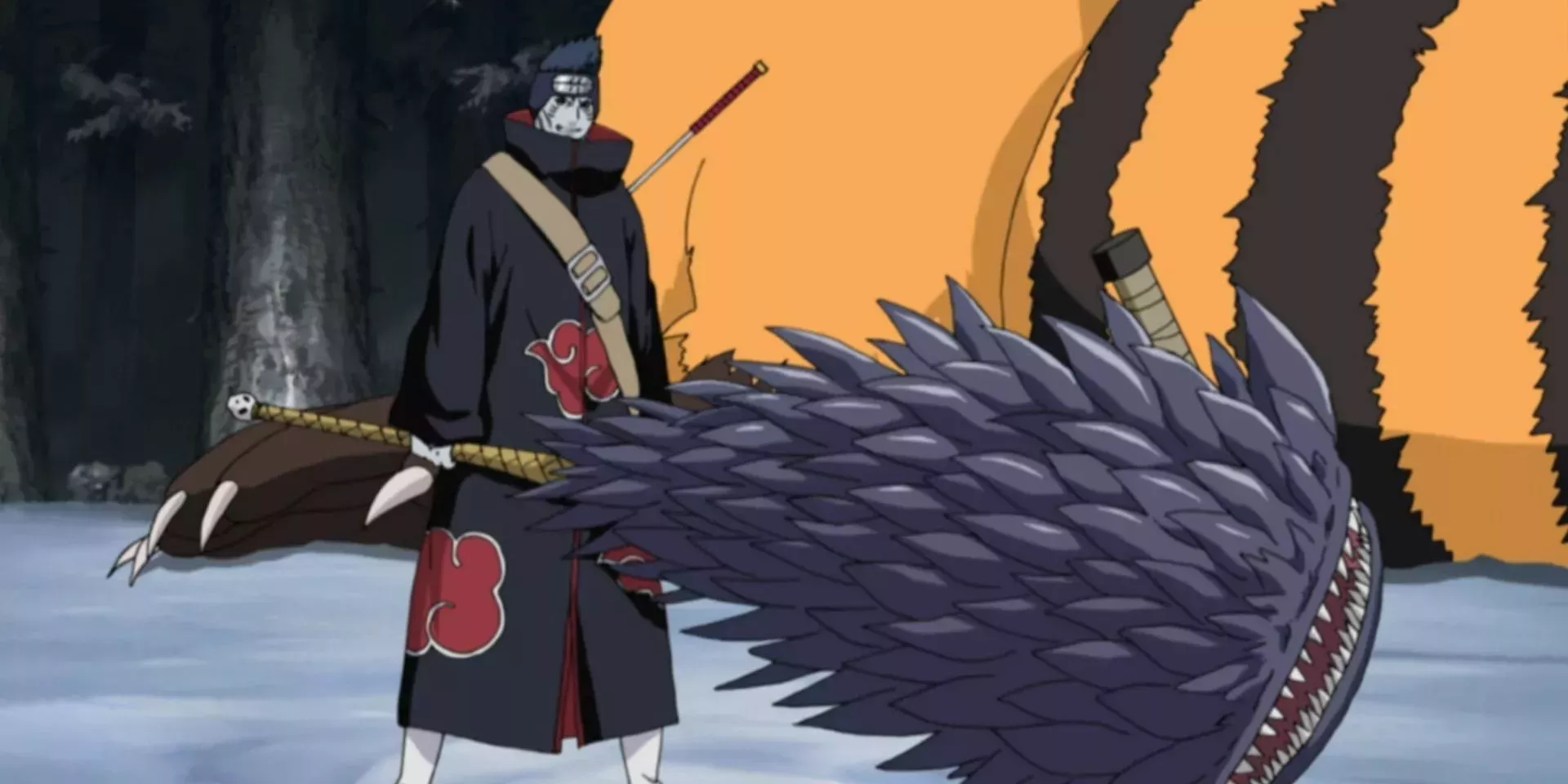 También conocido como la Bestia sin Cola, Kisame era tan fuerte como podía serlo un shinobi normal. Siendo uno de los miembros de Akatsuki, Kisame gozaba de gran estima incluso entre todos los criminales de rango S de sus filas. Fue compañero de Itachi Uchiha, y aunque algunos creen que eran iguales, Kisame era, de hecho, más débil que Itachi.