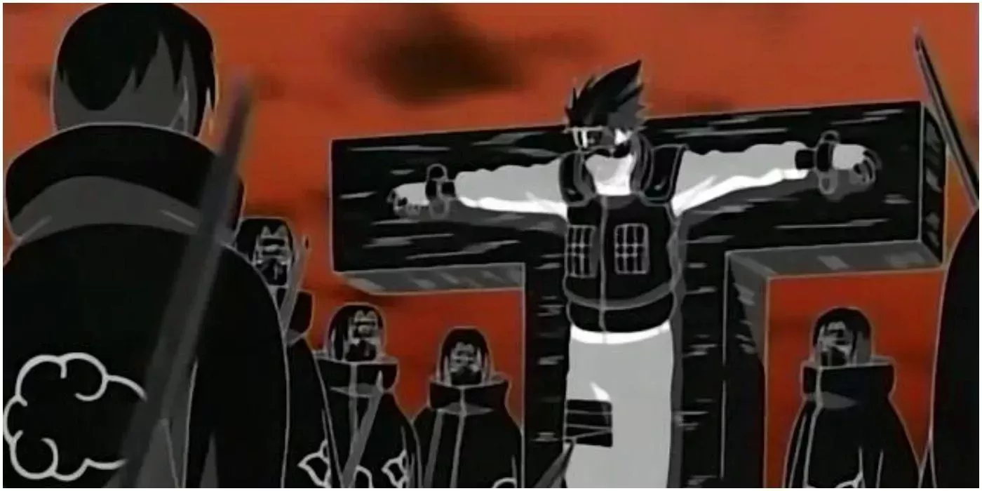 Kakashi fue sometido a una espantosa tortura mientras estaba atrapado dentro del genjutsu de Itachi. Después de ser apuñalado repetidamente mientras estaba atado a una cruz, Kakashi intentó convencerse de que nada de su dolor era real. Itachi interrumpió inmediatamente su pensamiento, diciéndole que sus esfuerzos eran inútiles. No sólo su dolor era real, sino que sólo había transcurrido un segundo de su condena de 72 horas. Este momento mostró el alcance del increíble poder de Itachi.