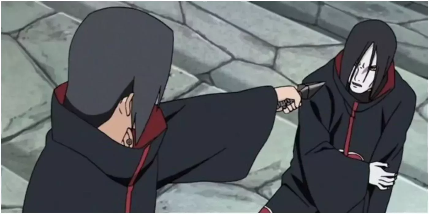 Itachi continuó diciendo que no sabía qué hacer con él, pero que podía ver que tenía poca consideración por la vida humana. Mientras Itachi continuaba reprendiendo a Orochimaru, se movió para lanzar un ataque mortal. Si no fuera por Kabuto, Itachi habría añadido otra impresionante hazaña a su currículum: matar a un Sannin Legendario.