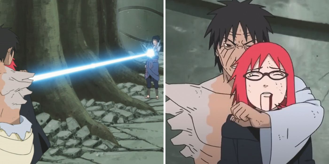 Danzo utilizó a Karin como escudo durante su batalla con Sasuke y pensó erróneamente que esto le impediría atacar. Sin embargo, Sasuke lo pasó brutalmente por alto y lanzó una lanza afilada Chidori a través de Karin para golpear a Danzo.