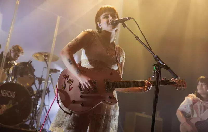 La vocalista y guitarrista Julie Dawson y la bajista Cara Joshi hablaron con nosotros entre bastidores, poco después de su actuación en Woodsies el domingo (30 de junio). Su aparición en Glasto siguió a unos meses enormes para la banda de Galway, que se convirtieron en estrellas de portada del NME antes del lanzamiento en enero de su aclamado álbum de debut "Madra".