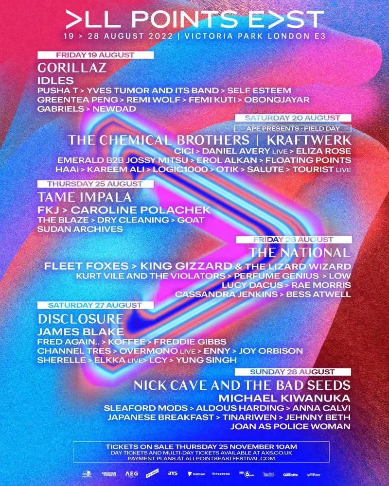 Nick Cave & the Bad Seeds, The National, Tame Impala y Kraftwerk son algunos de los cabezas de cartel de All Points East 2022.