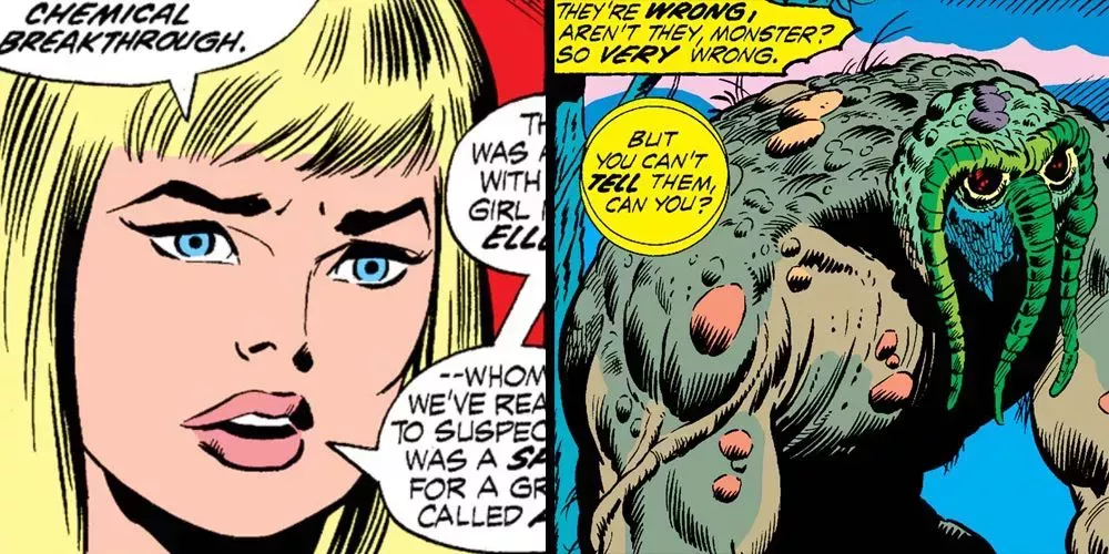 Morse, tras la revelación de su compromiso, acaba siendo cautiva del Dr. Allen en el pantano. Los Astonishing Tales #12-13 de Thomas y Buscema relatan esta historia y posiblemente insinúan el futuro del lado sobrenatural del MCU. Dado que tanto Morbius como Blade llegarán pronto a la pantalla, la historia del Agente 19 con el Hombre Cosa es natural que se adapte.