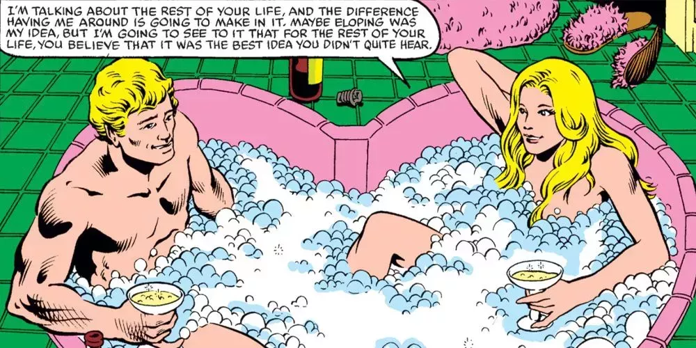 Bobbi Morse y Clint Barton, un amor nacido de una misión traumática, son una auténtica pareja de poder de Marvel que recuerda a los grandes romances de los cómics, como Cíclope y Jean Grey. Al principio, los dos se ven obligados a luchar entre sí por el villano Crossfire, pero consiguen derrotar al villano, aunque con daños auditivos permanentes para Barton. La experiencia compartida, así como su química natural, impulsa la decisión de la pareja de fugarse poco después en el Ojo de Halcón nº 4 de Mark Gruenwald. Se retiran a las montañas de Pocono, en Nueva York, tras haberse ganado un descanso de la rutina de los superhéroes. Esto posiblemente ocurrió en la línea de tiempo del MCU, dada la naturaleza reservada de la vida familiar de Barton que se vislumbra en Vengadores: La era de Ultrón y Ojo de Halcón.