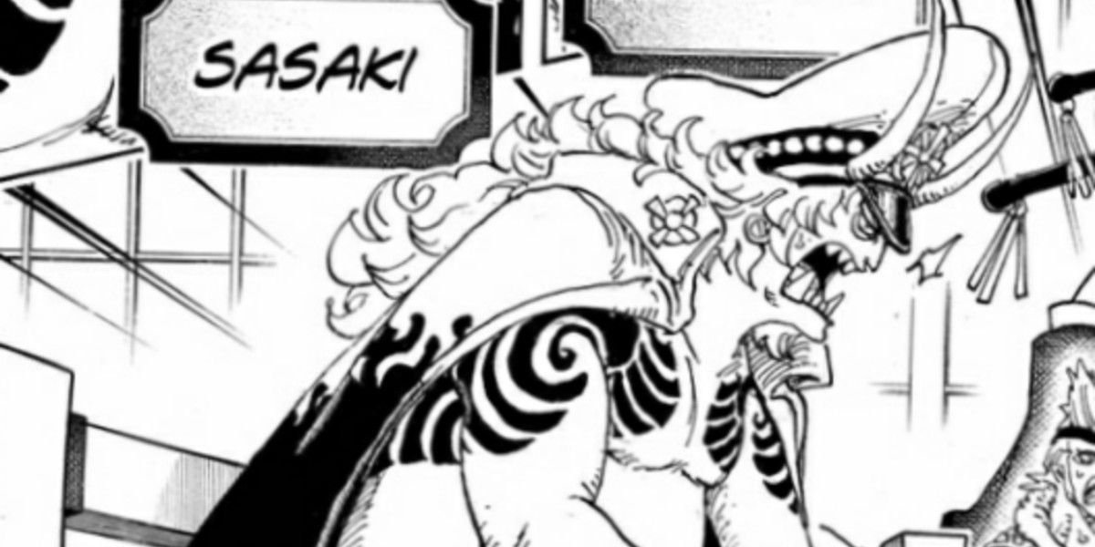 Esta fue una extraña escena que recientemente obtuvo una explicación aún menos satisfactoria. Sasaki es uno de los Seis Voladores de Kaido, los miembros de élite de su tripulación a punto de ser una All Star. Mientras el equipo de Sasaki buscaba a Yamato, Sasaki estaba flotando alrededor de una de las puertas de Onigashima cuando apareció la banda de Denjiro.
