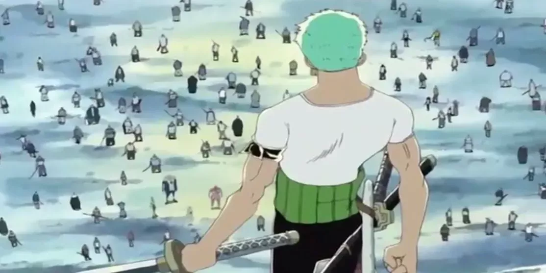 Zoro lucha para defender a sus amigos y Luffy sólo se despierta más tarde para descubrir los cadáveres resultantes. Luffy es alguien que confía mucho en sus amigos, y sin embargo ataca a Zoro con la intención de matarlo, en lugar de darle una oportunidad de explicarse o asumir que Zoro tenía una razón.